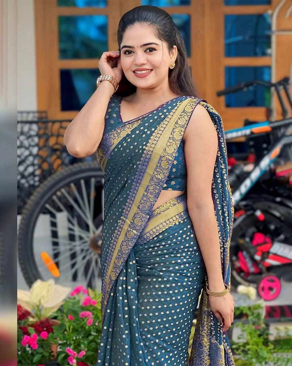MF 1830 PETROL SOFT LICHI SILK SAREE