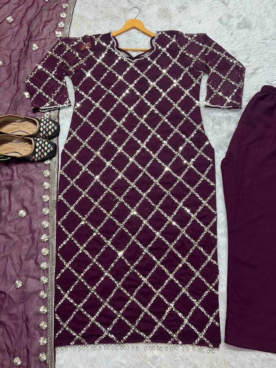 MF 409 New Fancy Embroidered Wine color Dress