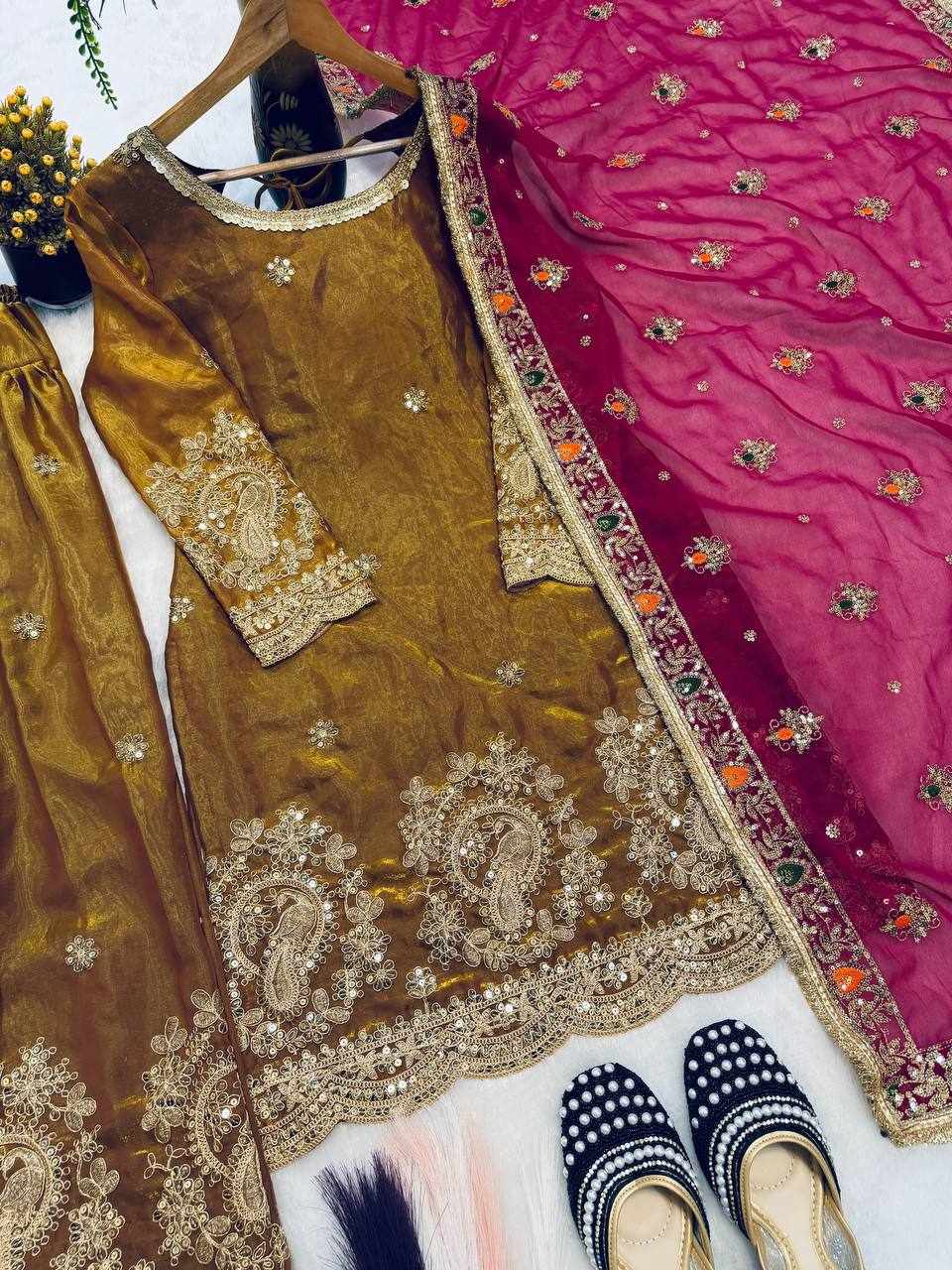 | Name : | MF 498 Designer Party Wear Mustard Color Dress |