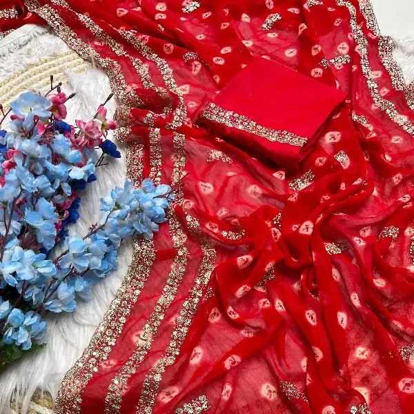 PIYU P1057 LEHERIYA COIN RED SAREE