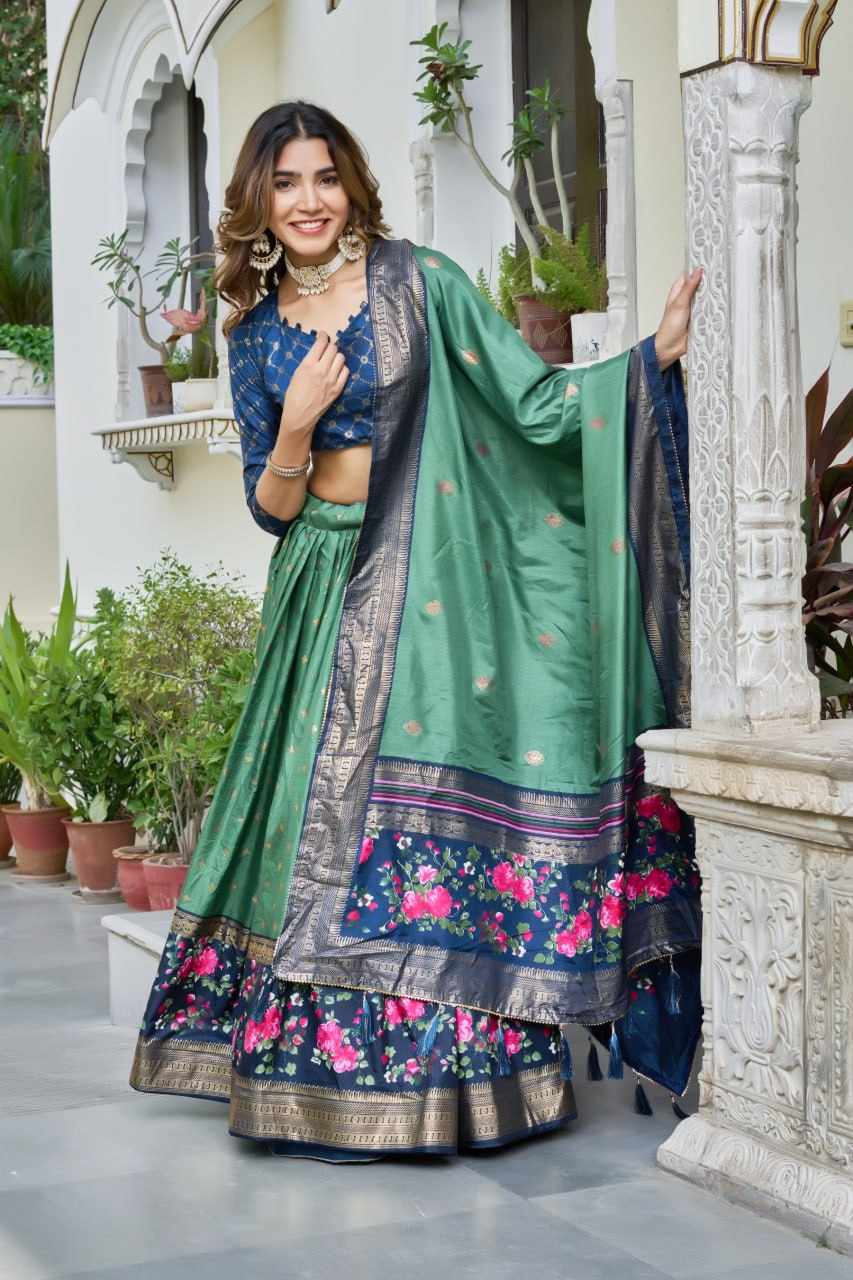 | Name : | PIYU 02-3 Silk Chaniya Choli Green Colour |