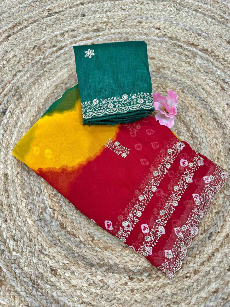 • Fabric: Premium Georgette with Mill Printed Designer Pattern