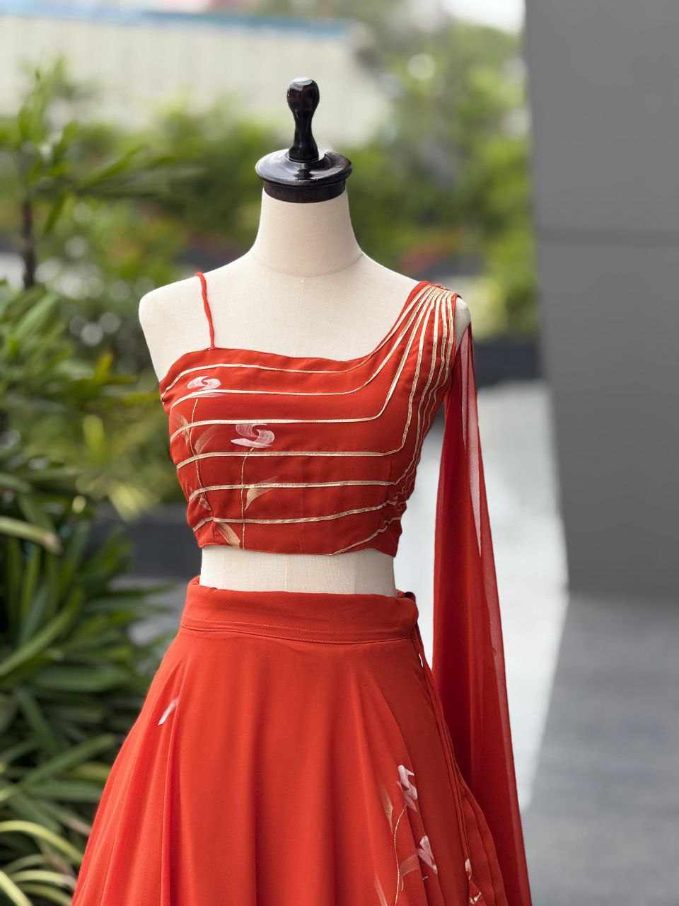 | Name : | SCnx 1158 Modern Georgette Orange colour Lahenga |