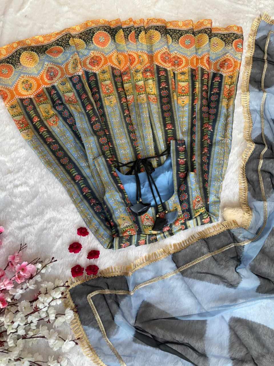 Dupatta – Stylish 2-meter Organza printed dupatta adorned with a designer lace border, adding a graceful finishing touch